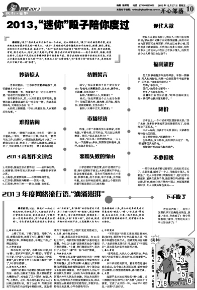 编者的话:2013,陪我们一起走过的流行语,你知道多少,又会使用多少?不管你知不知道,会不会使用,它的存在一定有其合理性,即“存在就是合理的”。它们有些或许没法成为文字表述的“正规军”,其“怪异”的形态有时只是为了打破“正规军”的“框框”,图某种新奇、怪异。有了这样的视角,你便会多一些包容,少些“目惊口呆”。流行语,既是网络时代的副产品,又是缓解人们内心复杂情绪的工具,表达的更多的是非正常表述的“顽皮”、“萌”、“非主流”等思想,其与众不同,不要一棍子打死,但它是否孕育着创新的种子,还有待时日加以验证。