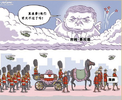 加拿大近日为前财长吉姆·费拉逖举行隆重的国葬。费拉逖是一百多年来为数不多的享受国葬待遇的政治家,因其生前致力于削减财政赤字和清廉操守而享誉政坛。