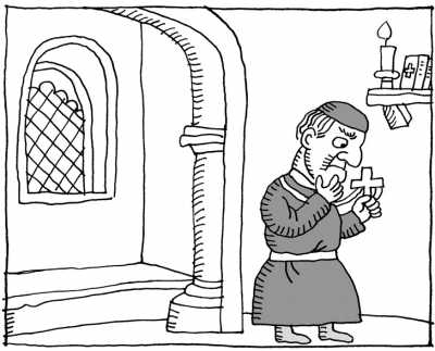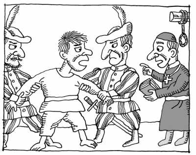 为了逃避良心的谴责,他又向另一个神甫忏悔。就这样,神甫们一个接着一个进行着忏悔。 |