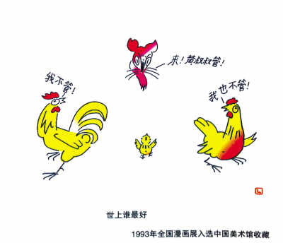 少年时,迷上《子恺漫画》、在上海美专读书时,得益鲁少飞、张光宇的鼓励、指点,发表了许多针砭时弊、警醒世人的作品。解放后,用手中画笔讴歌新社会、反映新时代,作品越发成熟。《我是黄河》是一幅较早提出严峻环保问题的作品,一经发表,引起轰动。该画评为全国漫画展的隹作奖,收入《中国美术50年》、编进中学语文教材、钱学森在中央党校作报告也重点引用了这幅画。《看齐》用大胆的留白、奇特的构图极好地调动了读者的思想空间,传递了作品表述的正能量……。数十年的笔耕和对漫画的追求、坚守,1993年中国漫画艺委会授于他《中国漫画金猴奖(荣誉奖)》。