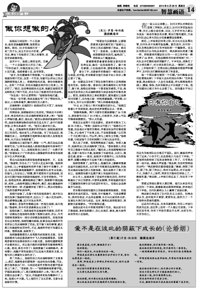 观众与其他演员都奇怪地看着施密特,不,是汤姆。“施密特,你怎么了?”主持人走过来问道。汤姆回过神来,马上学着施密特的样子挥了挥手中的鞭子。不过,如此近距离地接触狮子,汤姆感到头皮有点发麻。但他马上告诉自己:“别慌,狮子看到的不是我汤姆,而是与它朝夕相处的驯兽师施密特,不会有危险的。”于是,他堆起笑容,潇洒地挥起了鞭子,指挥狮子做起跳跃、戏球、上高架单腿独立等动作。最后,他也像施密特往常所做的一样,把脑袋伸进了狮子口。观众对他报以了热烈的掌声和欢呼声。