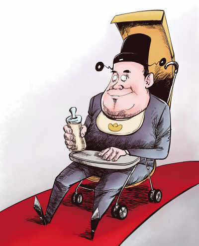 看来,反“四风”的“紧箍咒”还得坚持念、不停念,让那些“生活不能自理”的官老爷们彻底“断奶”,迫使他们扔掉铁拐杖、放下官架子,免得落下四体不勤、功能退化的老爷病。▲