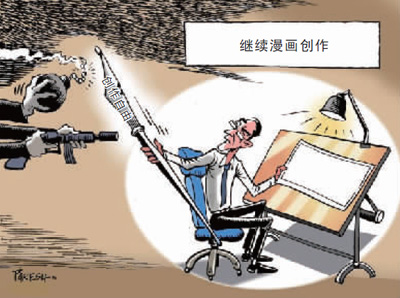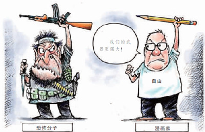 编者按 法国讽刺漫画杂志《查理周刊》近日遭到恐怖袭击的事件震惊世界。然而,杀戮并不能恐吓漫画家们,阻止他们的创作。一时间,全球各大报章和网站的漫画家纷纷以笔做刀,将漫画化作声讨恐怖主义的投枪和匕首。