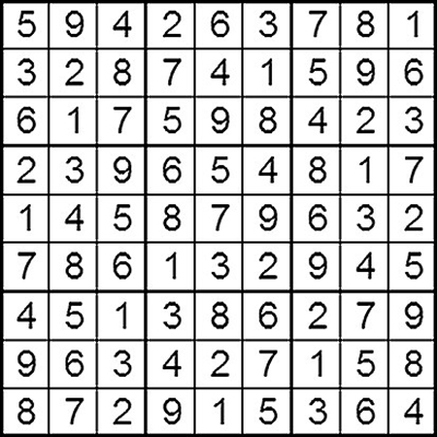 在每个小格子里填入1-9中的数字,使得每个数字在“九宫阵”的每行、每列、每个宫格中均只出现一次。