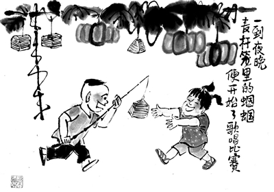 一到夜晚,麦秆笼里的蝈蝈便开始了歌唱比赛。