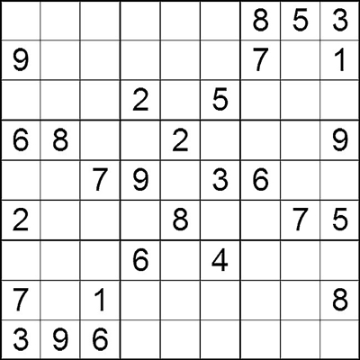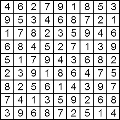 在每个小格子里填入1-9中的数字,使得每个数字在“九宫阵”的每行、每列、每个宫格中均只出现一次。