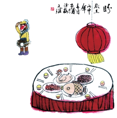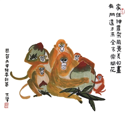 不思山中有无虎 只想申年有余粮 屋前自栽仙桃树 老友新朋任品尝 徐鹏飞