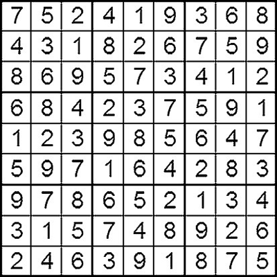 在每个小格子里填入1-9中的数字,使得每个数字在“九宫阵”的每行、每列、每个宫格中均只出现一次。(答案)