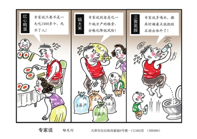 专家,指具备高超的专业技能,并依赖此类技能为生的职业人士。如今在我们生活中,有这样一些“专家”,他们常常信口雌黄“语不惊人死不休”,通过这样放炮型言论,哗众取宠,沽名钓誉,以引起公众注意,从而达到提高自身知名度的效果,这样的“专家论”,是经不起时间和事实考验的,“专家说”有风险听信须谨慎。