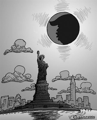 美国近日迎来百年一遇的“超级日全食”。许多人将最近的种族主义势力大爆发与特朗普政府比喻为暗无天日的“日食”。