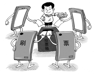 在微信朋友圈,为给孩子参加某比赛拉票,有的家庭不仅是发动所有关系网,还“另辟蹊径”——有刷票公司专门承接“拉票”的活儿,不少投票刷票APP也应运而生。——变了味儿的评比,这样得来的“第一”又有何实质意义?