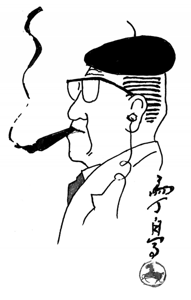 这顿火锅,荤、素、菌、肉、海鲜味皆全,麻辣香入味儿,吃得我全身舒坦、汗流满面。马丁不时为我夹菜,不停说难得到山城多尝尝地方味。席间,我俩谈报版,说漫画,讲创作。马丁老师特别喜欢听我介绍新疆的风土人情、地方特色小吃。我拿出带来的英吉沙小刀和维吾尔族小花帽送给他,他高兴地戴上小花帽扭动起来,问我像不像新疆的“巴郎”,引得邻座的朋友哈哈大笑。一会儿马丁老师给我一个大信封,我拆开一看:哇!是我梦寐以求的他画的《长寿图》。我连忙道谢。马丁老师说此画他从不送人,只送给新疆姑爷……他说有机会一定要到新疆游览天山,骑骏马,骑骆驼,看叼羊,吃够烤肉、抓饭……饭后走出店门他又掏出雪茄吸了起来,我劝他少吸,最好是戒掉。他拍拍我的肩膀说:“姑爷,弟少吸几口要得,戒是戒不了的……”