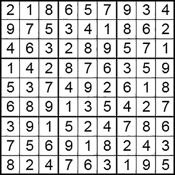 在每个小格子里填入1-9中的数字,使得每个数字在“九宫阵”的每行、每列、每个宫格中均只出现一次。(答案)