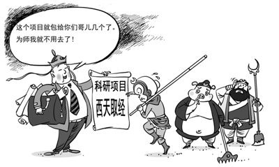 一手要项目,一手“转包”“分包”,这种现象如今不仅发生在工程承包领域,在科研领域也时有发生。很多研究者把精力用到申请立项上,在申请到项目之后就不把精力投入到学术上了。——把学术研究变成了争夺资源,严重背离科学研究的本意。