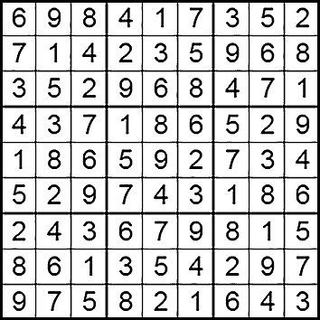 在每个小格子里填入1-9中的数字,使得每个数字在“九宫阵”的每行、每列、每个宫格中均只出现一次。(答案→)