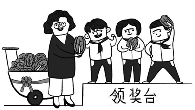杭州惠兴中学举办的“惠贤学子”颁奖典礼上,学校为优秀学生颁发了创意奖品——每人两小捆老师亲自种出来的青菜。校方称发给这些学生青菜寓意为“自力更生”、“淡雅朴 素”和“一生清白”。