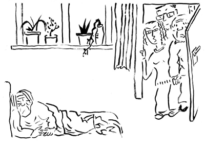 老刘敲了敲老太太的门,可是没有声音。他把头靠在门上,依稀听见老太太痛苦的声音此起彼伏。 |