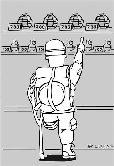士兵问连长:“作战时踩到地雷咋办?”连长大为恼火:“能咋办?踩坏了照价赔偿!”