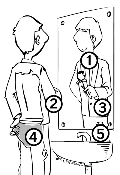 (左边两幅漫画共有5处不同,快来找找看吧!)画/刘鹏