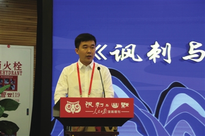 《讽刺与幽默》报总经理岳增敏在致辞中指出:善用国学经典中蕴含的民族智慧,运用漫画这种群众喜闻乐见的幽默艺术使国学经典成为推进中华民族伟大复兴的不竭动力,引导社会大众遵守“修齐治平、尊时守位、知常达变、开物成务”的文化传统,强化社会公序良俗,让国学经典成为涵养社会主义核心价值观的源泉,发挥凝聚共识、成风化人的重要作用,是《讽刺与幽默》报创立国学·经典专版最纯真的初心。