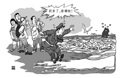 外出游玩,还请注重安全第一。上海渔人码头一个人工沙滩假期时海水涨潮,一对情侣在水中热吻忘记上岸,随后这个视频火了——视频中保安大喊“别亲了,涨潮了”。保安大哥成功成为最抢戏的人。 |