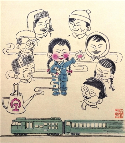 这首七律,颇具打油味儿。瞧聂老写的这位女乘务员,大大咧咧,穿着长出身段的肥大制服,拖着更长的袖子,在车厢来回晃荡,叫卖着新出版的《北大荒》杂志。她一会儿又朗诵起毛主席诗词来了,如金声玉振;继而抑扬顿挫给大伙读《人民日报》,够忙活的。可是念着念着,带出白字来了,也许把“匆匆”读成了“忽忽”,把“机械”念成了“机戒”?两根黄毛小辫摇来摆去,多投入啊。冬日的北大荒,在没有暖气的车厢里,小姑娘的脸蛋冻得通红通红,但她恪尽职守,还给自己加了额外的活儿,却毫不在乎自身“形象”。她也勇敢,不识的字,就念半边,大胆读出来,反正不能打磕巴……而被她的飞扬神采感染的乘客,就像沐浴了一身春光。