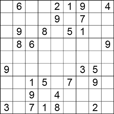 在每个小格子里填入1-9中的数字,使得每个数字在“九宫阵”的每行、每列、每个宫格中均只出现一次。(答案→)