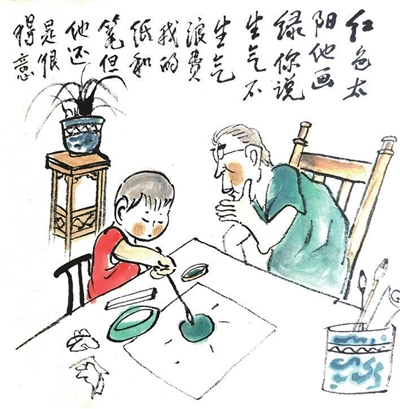 红色太阳他画绿,你说生气不生气。浪费我的纸和笔,但他还是很得意。