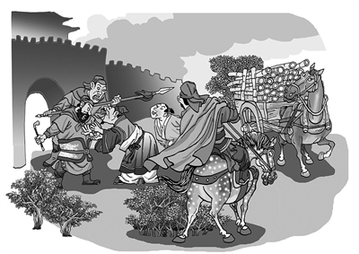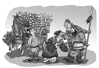 7.一名士兵上前围着车子仔细看一遍,见车上装的都是楠竹杠杠,没啥贵重的东西,就想放老财主出城。 |