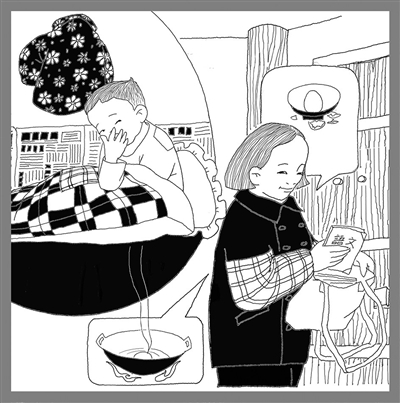 3.“妈啊,”我边穿衣服埋怨,“我咋不知道?给我吃鸡蛋,为啥不把我叫醒?让我稀里糊涂吃回鸡蛋,也不知道煮鸡蛋到底是啥味道。” |