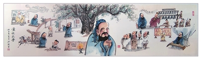 孔子筑建了一座思想的宫殿,他以仁、义、礼、智、信为基,忠、德、宽、恕、勇为栋,孝、廉、恭、俭、敏为梁,和合、中庸、教化、六艺为檩,《诗》、《书》、《礼》、《乐》、《易》、《春秋》为椽,高耸起中华民族最初的人文精神大厦。两千多年过去了,孔子并没有走远,圣人的智慧之光千年不息!