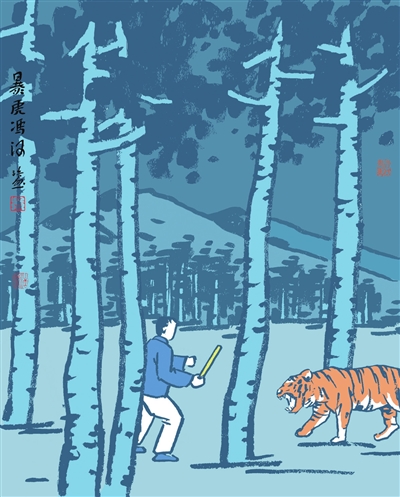 【画语】赤手空拳打老虎,又不是武松,肯定会成为猛兽的食物。这句话形容做事不假思索,鲁莽冒险。这种有勇无谋的行为不可取。