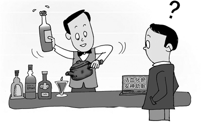 继中药茶饮、中药咖啡后,最近,“中药鸡尾酒”在不少城市酒吧出现。鸡尾酒中加入当归、陈皮、人参等中药材,并标注“活血化瘀、安神助眠”等功效。——不加任何中药的酒,喝多了一般都“助眠”。