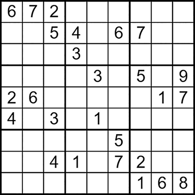 在每个小格子里填入1-9中的数字,使得每个数字在“九宫阵”的每行、每列、每个宫格中均只出现一次。(答案→)