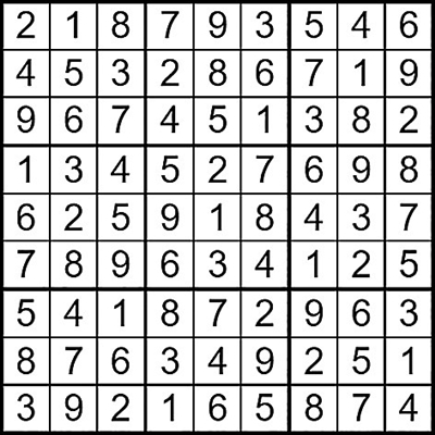 在每个小格子里填入1-9中的数字,使得每个数字在“九宫阵”的每行、每列、每个宫格中均只出现一次。(答案→)