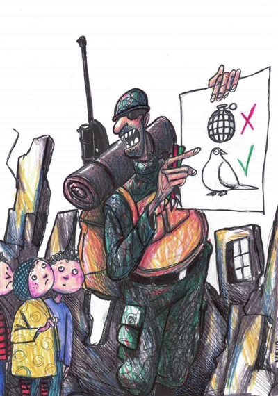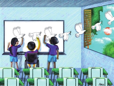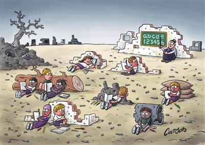 战火纷飞,难有一方安静书桌。这组漫画定格了战争对教育的残酷破坏,更显和平可贵。愿硝烟散尽,战火止息,校园重归书声朗朗。