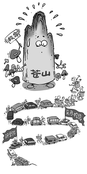 云南大理苍山的“采菌游”成为网红项目,吸引大量游客进山寻找、采摘各种野生菌。而部分游客的无序滥采和破坏性行为,正对苍山生态构成威胁。一些旅游项目打的是“研学游”“探险游”的旗号,干的却是“薅生态羊毛”的活儿。——这是亲近自然,还是掠夺自然?