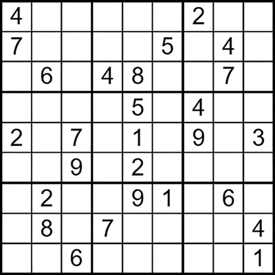 在每个小格子里填入1-9中的数字,使得每个数字在“九宫阵”的每行、每列、每个宫格中均只出现一次。(答案→)