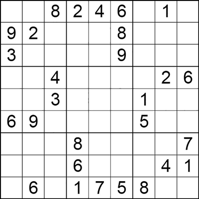 在每个小格子里填入1-9中的数字,使得每个数字在“九宫阵”的每行、每列、每个宫格中均只出现一次。(答案→)