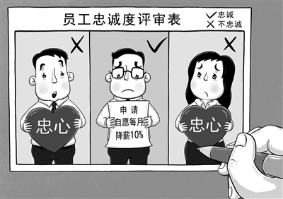 广州多益网络股份有限公司宣称由于“今年公司效益良好,利润有较大增长,公司决定,允许员工自愿申请每月降低待遇的10%”。为什么利润大增却要“自愿”降薪?据说这是公司的“忠诚度”测试。——所谓的“自愿”背后,充满着无奈和辛酸。奉劝某些企业经营者,别把扭曲的价值观带到职场里了。