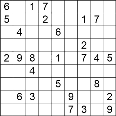 在每个小格子里填入1-9中的数字,使得每个数字在“九宫阵”的每行、每列、每个宫格中均只出现一次。(答案→)