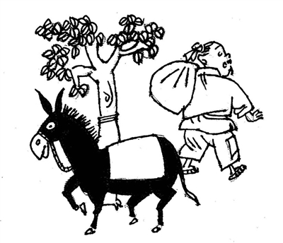 3.等卖完炭回来,王五大吃一惊。他拴在树上的驴,变成了一头毛色难看的瘦驴了! |