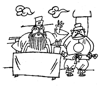 6.包公了解案情后,把惊堂木一拍,大声喊道:“把这毛驴关上三天,别给它吃,别给它喝,到时我再来审它!” |