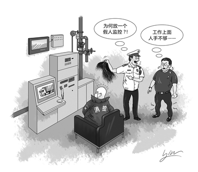 江苏南通如东县消防救援大队日前发现,一家物流企业的消防控制室因设有消防值班监督摄像头,竟然让假人模特代替员工值班,该企业为了让自己的“神操作”更加逼真可谓“煞费苦心”,他们经常给假人模特更换不同颜色的衣服和“工作”位置。——自欺欺人的做法表面上看是给企业节约成本,实则让火险处于不设防状态,一旦发生火情,必将酿成大灾。