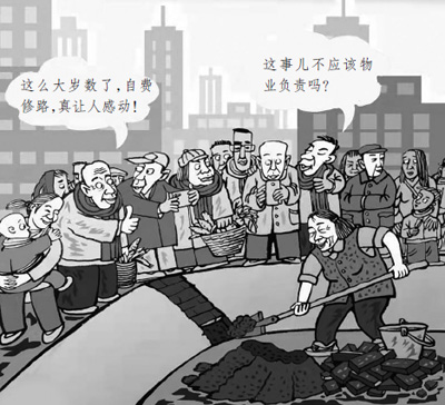 面对69岁奶奶修补路面,公众不能止于感动。小区路面是公共设施,根据物业管理条例,公共区域设施设备等保养维修维护应当有物业管理企业完成,如果在质保期之后,出现了很严重的问题,比如严重的下陷,大面积损坏,根据当地大修基金的使用规定,在一定维修金额以内,物业自行维修,超过了则有大修基金进行维修。