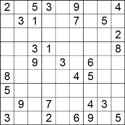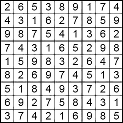 在每个小格子里填入1-9中的数字,使得每个数字在“九宫阵”的每行、每列、每个宫格中均只出现一次。(答案→)