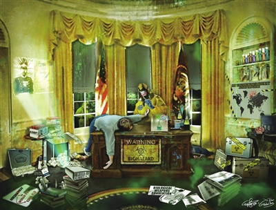 嗜血 是谁藏在乌克兰的战火背后笑着数钱?是谁不断增长天价军费支出,超过排名第二至第十国家的总和?是谁在全球不断制造“敌人”,通过挑起他国冲突大发战争财?这幅《嗜血》中所描绘的细节向你揭开美国军工复合体的“战争吸血鬼”本质。 |