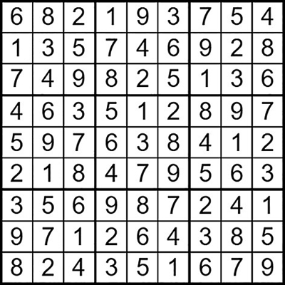 在每个小格子里填入1-9中的数字,使得每个数字在“九宫阵”的每行、每列、每个宫格中均只出现一次。(答案→)
