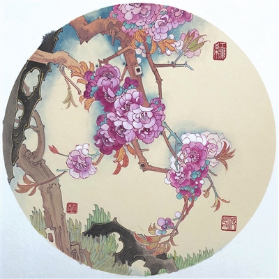 花名签·之八(袭人) 画:桃花;题:武陵别景;诗:桃红又是一年春。 注:杏花陪一盏,坐中同庚者陪一盏,同辰者陪一盏,同姓者陪一盏。解读:诗出谢枋得《庆全庵桃花》诗:“寻得桃花好避秦,桃红又见一年春。”诗句与题“武陵别景”都用《桃花源记》的典故,桃源人为避秦时战乱躲进山中,而袭人也应该是在抄家之前离开贾府嫁给了伶人蒋玉菡。因为她之前已经跟过宝玉,所以说“又是一年春”。婚后过了一段“夫唱妇随真和合”的快乐时光,也可谓别有一番光景。可是桃花源离开之后再难寻觅,袭人夫妇最终也不免长久分离。