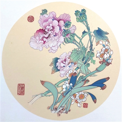 花名签·之七(黛玉) 画:芙蓉;题:风露清愁;诗:莫怨东风当自嗟。注:自饮一杯,牡丹陪饮一杯。 解读:诗出欧阳修《明妃曲·再和王介甫诗》:“红颜胜人多薄命,莫怨东风当自嗟。”黛玉的《葬花吟》中也有“一年三百六十日,风刀霜剑严相逼”,红颜薄命,正是黛玉命运的概括。《红楼梦》中将黛玉和晴雯拟作芙蓉花,是木芙蓉而非水芙蓉,木芙蓉清高雅致、寂寞飘摇,是黛玉“风露清愁”气质的绝佳写照。而脂批说“钗黛合一”,牡丹花对应的宝钗也难免与黛玉同饮一杯(悲悲)了。